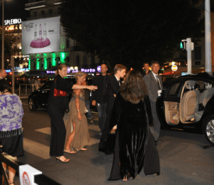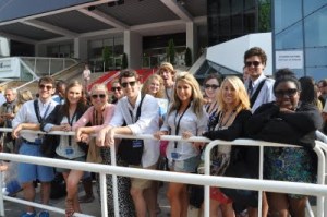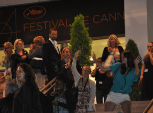 What happens next is a series of unfortunate events. The gate to enter the red carpet stairs finally opened and students began to boom up them into the Debussy Theatre (where all films in the Un Certain Regard category of competition are screened). However, the line quickly stopped in short bursts as several of our students were stopped for having on – gasp! – flip flops. I know, I know – American students in Cannes wearing comfortable shoes while waiting in line to see an afternoon movie – the horror! Well, thank goodness this wasn’t our first rodeo and the students were prepared with bags of extra clothes/shoes ready to throw on. It is Cannes, after all, and I teach the students early on that you never know when you’ll nab a last-minute red carpet ticket or be whisked away on a yacht and proposed to by a hot, young celeb – so it is better to arm yourself with tux/cocktail dress and fancy shoes at every moment of the day…because you just never know.